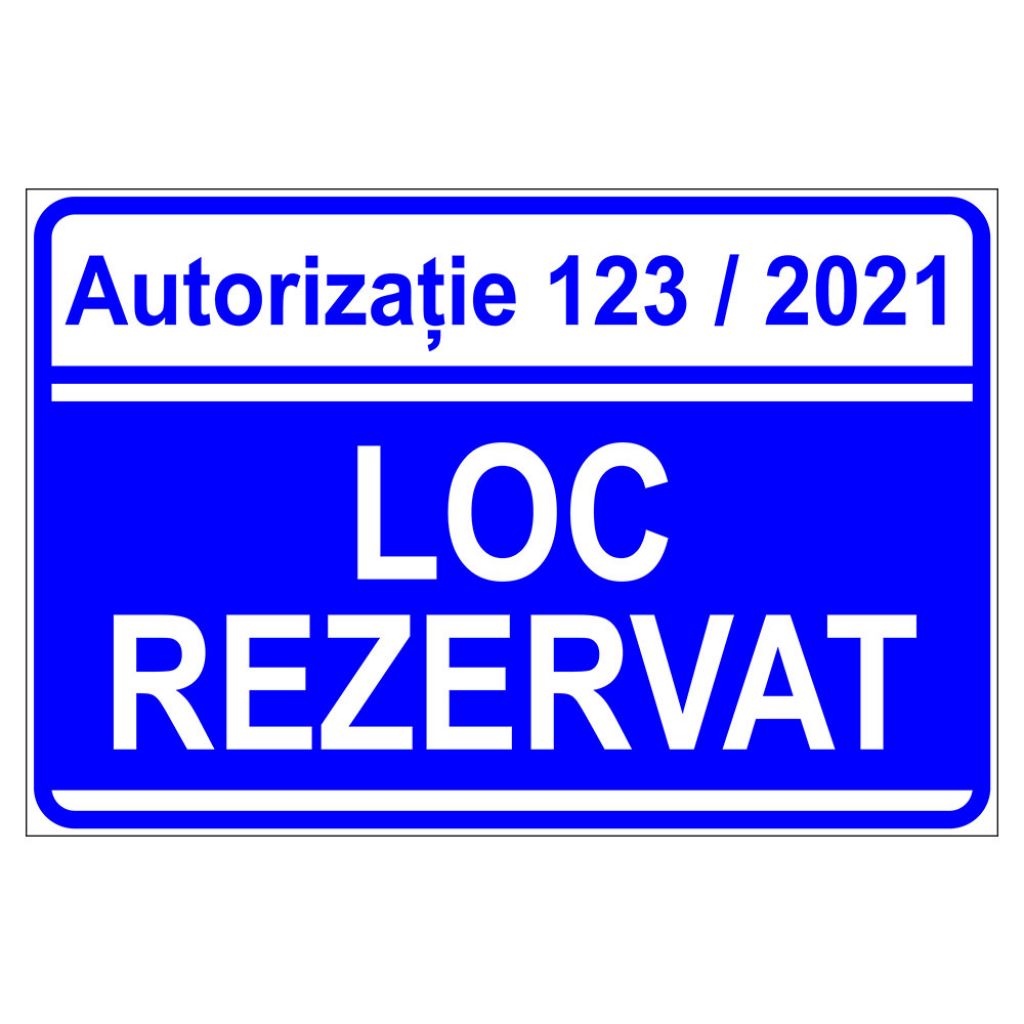 Placuta parcare, autorizatia numar, loc rezervat, Sigtra, 300x400 mm, autocolant vinyl, 0.07 mm