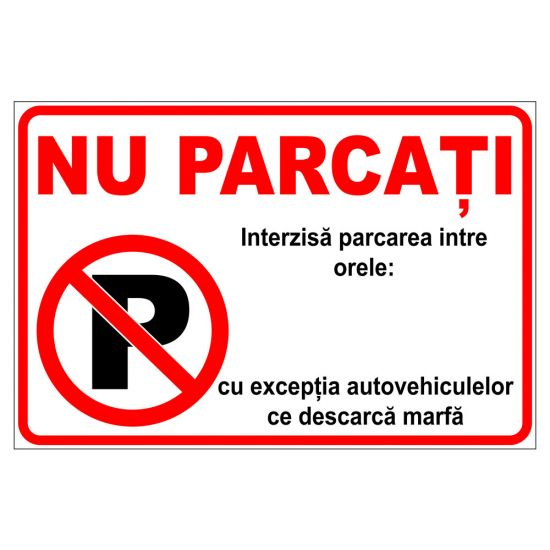 Placuta parcare, nu parcati, Interzisa parcarea intre orele, Sigtra, 200x300 mm, PVC, 1 mm