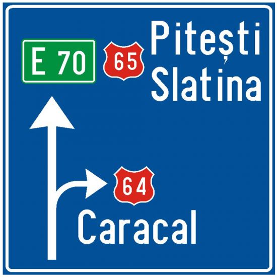 Presemnalizarea directiilor la o intersectie de drumuri din afara localitatilor F1, indicator de orientare este instalat la 100-200m de o intersectie de drumuri. Acest indicator presemnalizeaza directiile de urmat pentru locatiile inscrise pe indicator. Indicator rutier garantat, agrementat și certificat CE din tablă de oțel tratată prin zincare sau fosfatare, vopsit în câmp electrostatic și acoperită cu folie reflectorizantă clasa I, II sau III.
