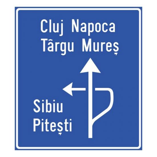 Presemnalizarea directiilor la o intersectie denivelata de drumuri F2, indicator de orientare.