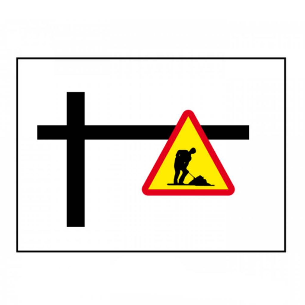 Indicatorul din imaginea prezentată, presemnalizează un sector de drum unde se execută lucrări pe partea carosabilă.