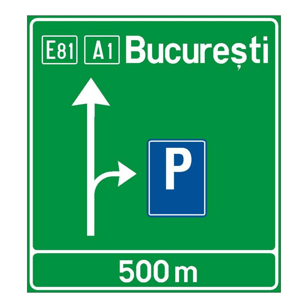 Presemnalizarea pe autostrada pentru parcare F8, indicator de orientare.