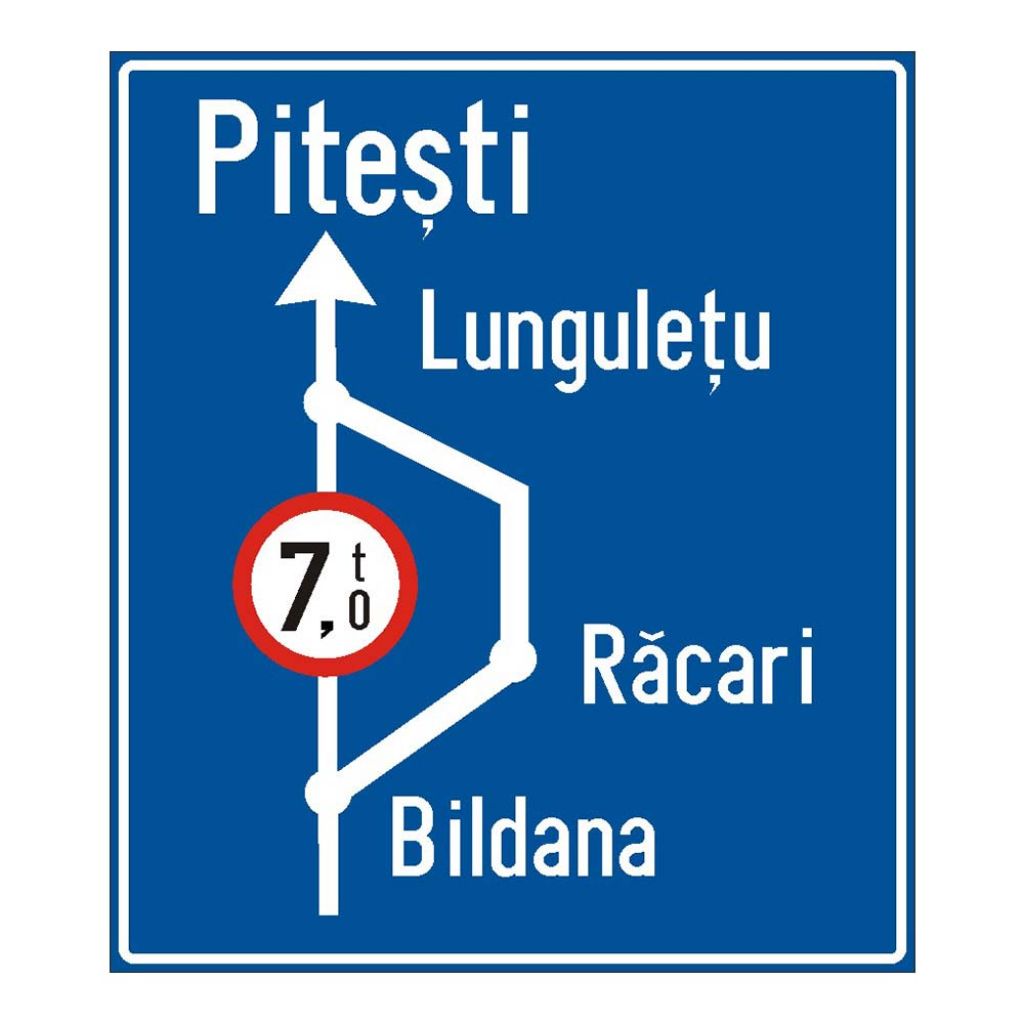 Presemnalizarea traseului de urmat in cazul unei restrictii de circulatie F7, indicator de orientare.