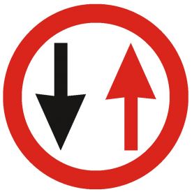 Prioritate pentru circulatia din sens invers B5, indicator de prioritate se montează pe sectoarele de drum îngustat unde nu au loc să circule două vehicule unul pe lângă celălalt, fiind precedat de indicatorul "Drum îngustat". La întâlnirea acestui indicator, conducătorul autovehiculului pierde prioritatea faţă de toate autovehiculele care circulă din sens opus. Acest indicator poate fi însoţit şi de un panou adiţional pe care sunt precizate categoriile de autovehicule carora li se adresează acest indicator.