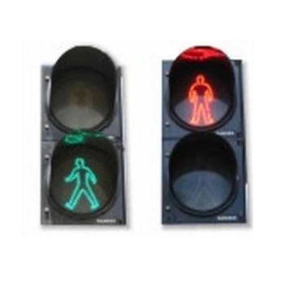 Semafor semnalizare Trecere de pietoni cu LED Specificatii tehnice: Factorul de putere: > 90%. Factorul de distorsiuni:<20% pentru P<15W. Domeniul de temperaturi: -40...+74 ?C . Tensiunea de alimentare: 230 Vca. Corpul numaratorului: din policarbonat. Rezistenta la socuri: Clasa IR 3. Diametrul suprafetei luminoase a compartimentului: 200 x 200mm. Grad de protectie: IP66 pentru compartimentul optic in stare montata pe semafor si IP 56 pentru incinta. Elementul optic realizat cu LED-uri este montat pe usa semaforului. Caracteristici functionale: Semafoarele pietonale cu contor de durata au doua module: 'contorul de durata' si simbolul 'pieton'. La semnalul rosu, este afisat cu rosu simbolul unui pieton stind pe loc. La semnalul verde este afisat cu doua cifre galbene numarul de secunde ramase pentru traversare si cu verde silueta unui pieton in miscare. Modul de lucru: digital, in timp real. Este protejat la umezeala si praf. Fiabilitate si siguranta pentru pietoni (comparativ cu lampile de semnalizare cu incandescenta): Are o vizibilitate sporita. Elimina desele defectari produse la sistemele cu lampi incandescente. Minimizeaza efectul luminii solare. Functioneaza in domeniul de temperaturi: -40...+70 grade C. Tensiunea de alimentare: 220 Vca. Contorul de durata: durata maxima a timpului de traversare: 99 secunde. La durate mai mari de 99 secunde durata nu va fi afisata.
