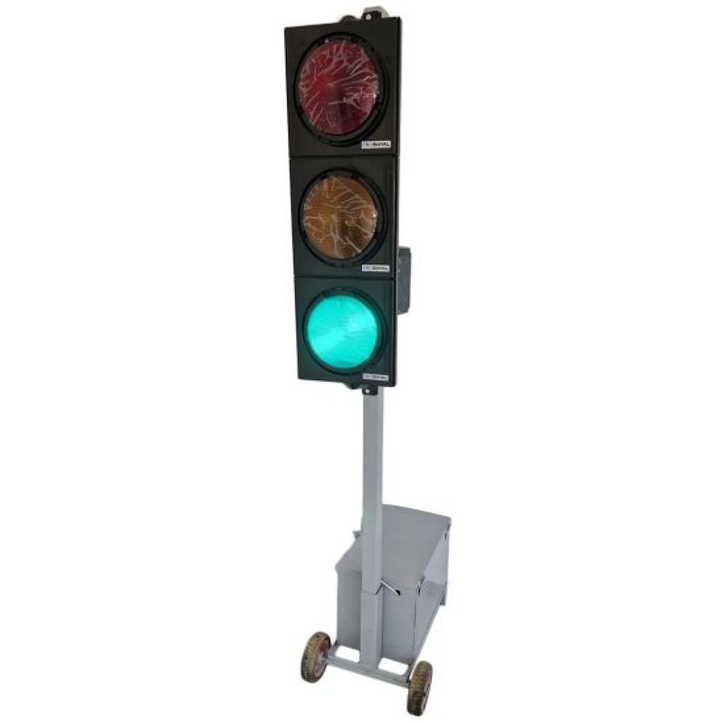 - Contine 3 viziere, elementele de montare a semaforului pe stalp, stalpul, cutia pentru depozitarea acumulatorului si centrala de comanda