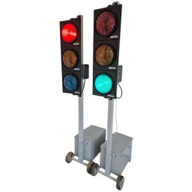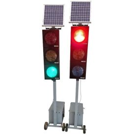 Set 2 semafoare mobile cu panou solar pentru zone cu lucrari, lumini rosu-galben-verde.