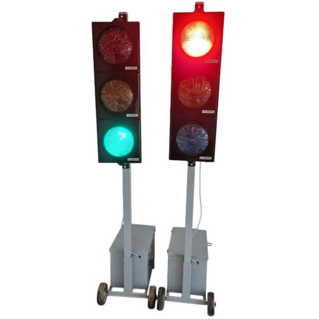 Set 2 semafoare mobile pentru zone cu lucrari, lumini rosu-galben-verde.