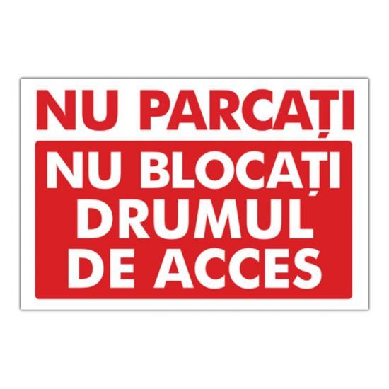Placuta parcare, nu parcati, nu blocati drumul de acces, Sigtra, 200x300 mm, PVC, 1 mm