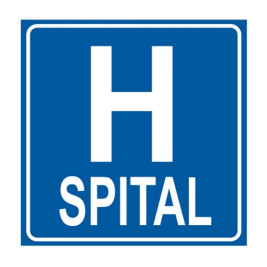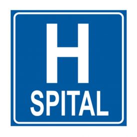 Indicatorul rutier se întâlnește în apropierea spitalelor pentru a informa conducătorii de vehicule în legătură cu existența unei unități medicale.