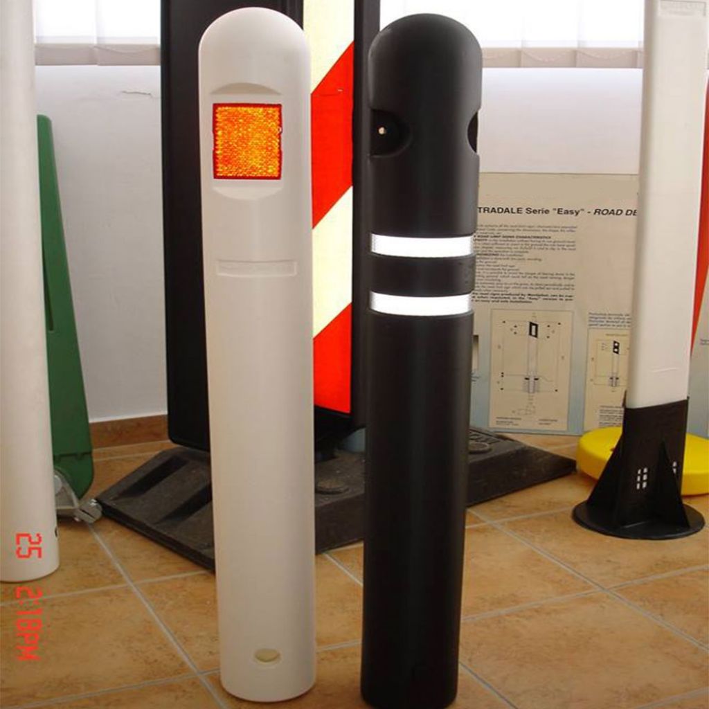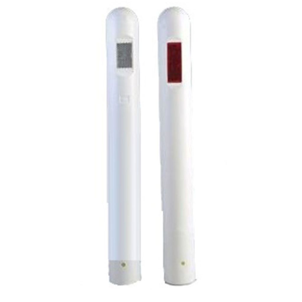 Stalp de ghidare lamelar rotund H=1000mm Stalp de ghidare lamelar rotund H=1000mm confecționat din material plastic. Pe partea de sus a stâlpului, pe ambele fețe, sunt aplicați catadioptrii de culoare albă, respectiv roșie. Stâlpii de ghidare lamelari sunt de culoare albă, au un aspect neted și prezintă o bună rezistentă la acțiunea razelor solare.