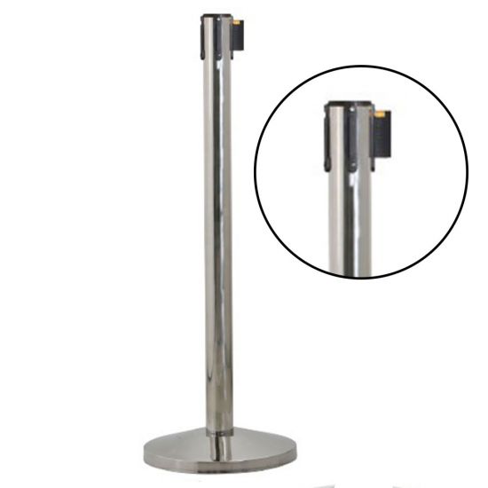 Stalp de ghidare si delimitare, cromat, cu banda retractabila, rosie, 2 metri