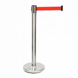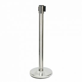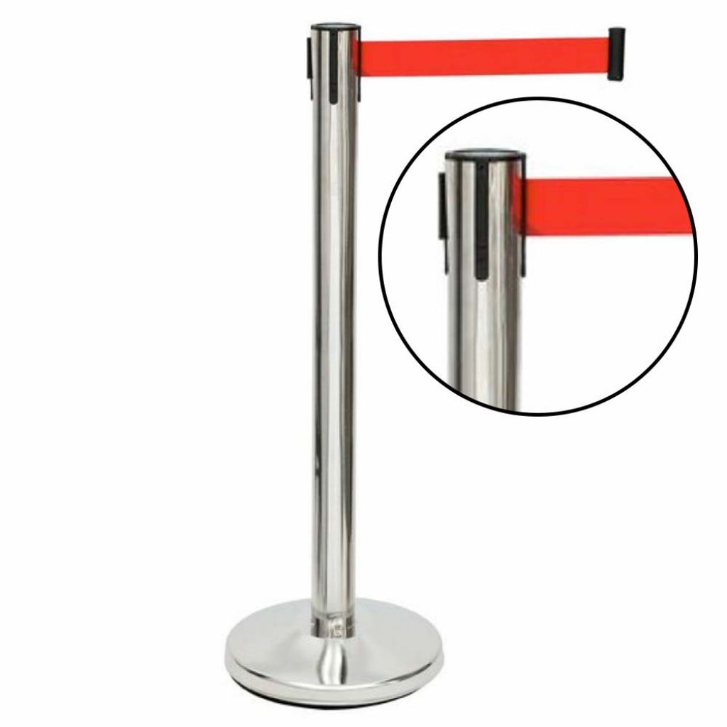 Stalp de ghidare si delimitare, cromat, cu banda retractabila, rosie, 2 metri