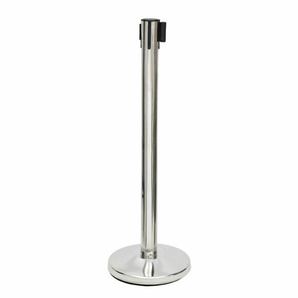 Stalp de ghidare si delimitare, argintiu, cu banda retractabila, neagra, 3 metri