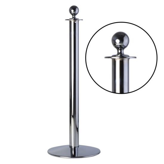 Stalp de ghidare si delimitare, cromat, cu banda retractabila, rosie, 2 metri