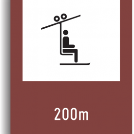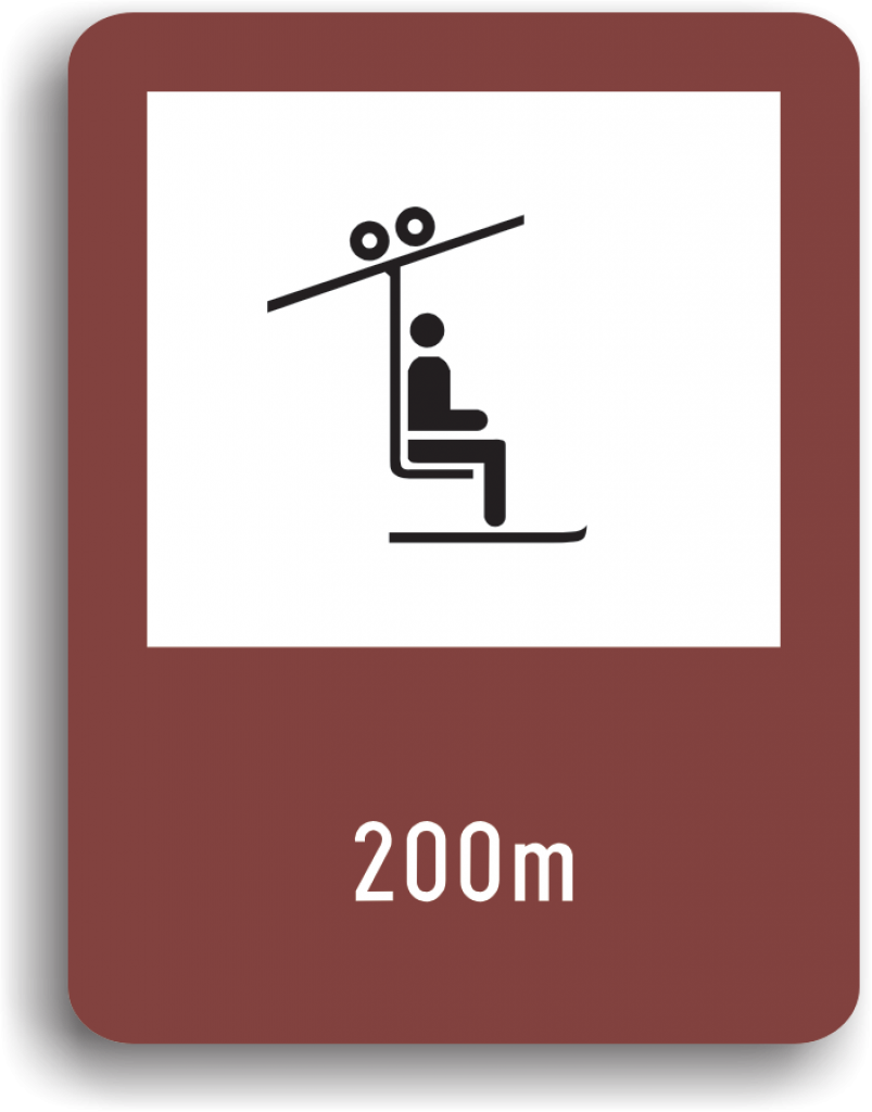 Aceste indicatoare rutiere de informare turistică, se adresează conducătorului de vehicul, informându-l că prin apropiere există o amenajare cu teleschi.