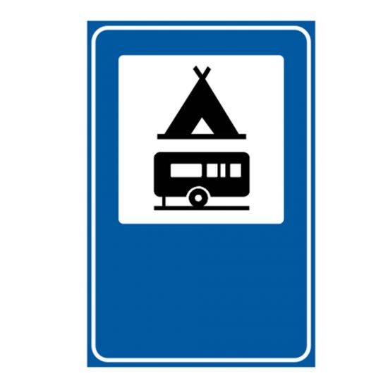 Indicatorul rutier din imaginea alăturată, se întâlnește în apropierea unui teren special amenajat pentru camping și staționare a autovehiculelor și rulotelor.