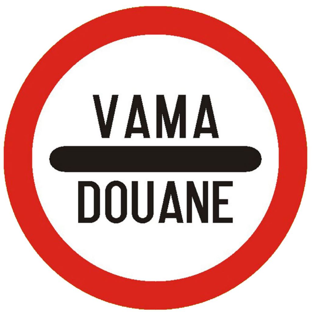 Vama C32, indicator de interzicere sau restrictie se amplaseaza inaintea punctului vamal. La intalnirea acestui indicator, conducatorul de vehicul este obligat sa opreasca la punctul vamal.