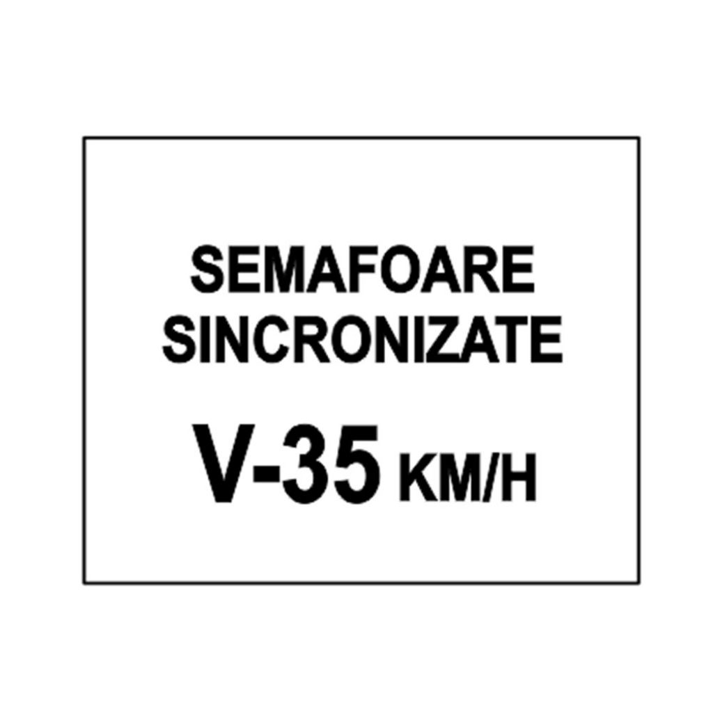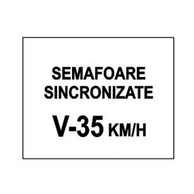 Se întâlnește la începutul sectorului de drum cu semafoare sincronizate. Viteza înscrisă pe indicator, reprezintă viteza pe care va trebui să o mențină conducătorul de vehicule, pentru a prinde culoarea verde la toate semafoarele montate pe sectorul de drum respectiv.