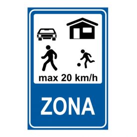 Indicatorul rutier alăturat, se montează la intrarea într-o zonă rezidențială. În această zonă pietonii pot circula pe partea carosabilă, jocul copiilor este permis, iar viteza maximă admisă este de 20 km/h.